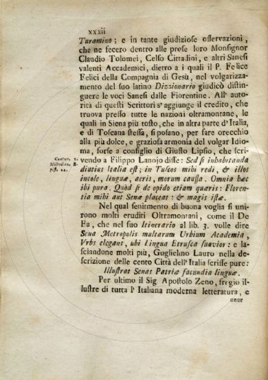 Gigli, Girolamo <1660-1722> Vocabolario cateriniano di Girolamo Gigli da lui lasciato imperfetto alla lettera R e che in questa seconda impressione si dà compito ove si spiegano e si difendono alcune voci, e frasi di s. Caterina da Siena usate da essa nelle sue opere, secondo il dialetto sanese, e sue proprie : con l'aggiunta della retrattazione del medesimo : della farsetta del Piato dell'H. di Pier Jacopo Martelli : e delle lettere di quasi tutte le Accademie d'Italia in approvazione della locuzione della santa. - A Manilla nell'isole Filippine [i. e. Lucca] : [s.n.], [dopo il 1722]. [2], ix, [1], xliv, 483 p., [1] c. di tav. : ill. ; 4° Firenze, Biblioteca dell'Accademia della Crusca, DIZ.220.CATERI./GIGL.1- Scheda OPAC |