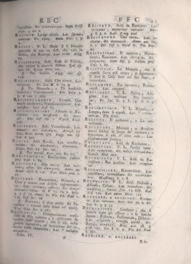 Vocabolario degli Accademici della Crusca Compendio del Vocabolario degli Accademici della Crusca : formato sulla edizione quarta del medesimo. - Firenze : Domenico Maria Manni, 1739. Firenze, Biblioteca nazionale centrale, Palat.(11).C.7.5.1 Volumi dell'opera: To. 1 To. 2 To. 3 To. 4 To. 5 |
