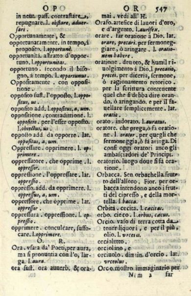 Politi, Adriano <1542-1625> Dittionario toscano compendio del vocabolario della Crusca : con la nota di tutte le differenze di lingua che sono trà questi due populi fiorentino, e senese / compilato dal sig. Adriano Politi. - Roma : Gio. Angelo Ruffinelli, 1614. Roma, Biblioteca nazionale centrale, 6. 11.G.47