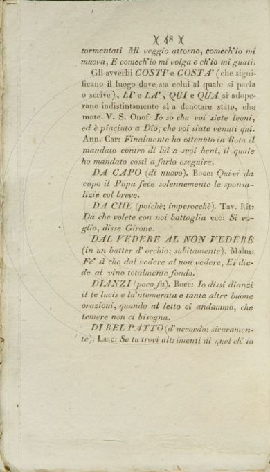 Avvertimenti a chi scrive in italiano con un saggio delle eleganze ed un picciol vocabolario domestico di Tommaso Azzocchi. - Roma : D. Ercole, 1828.