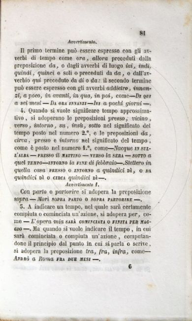 Rodinò, Leopoldo <1810-1882> Grammatica novissima della lingua italiana : per uso del liceo arcivescovile e de' seminari di Napoli / rinnovata e corretta da Leopoldo Rodinò sopra quella compilata nello studio di Basilio Puoti. - Napoli : dalla Tipografia Trani, 1856-1857. 3 v. in 2 ; 20 cm Firenze, Biblioteca dell'Accademia della Crusca, GRAM.43.ROD-p.1.1-2/3- Scheda OPAC Volumi dell'opera: Vol. 1 Voll. 2 e 3 |